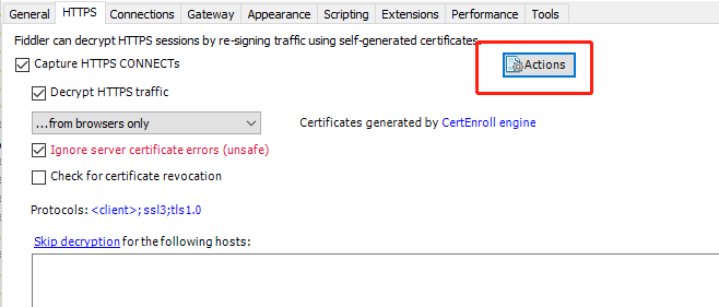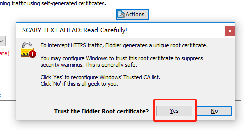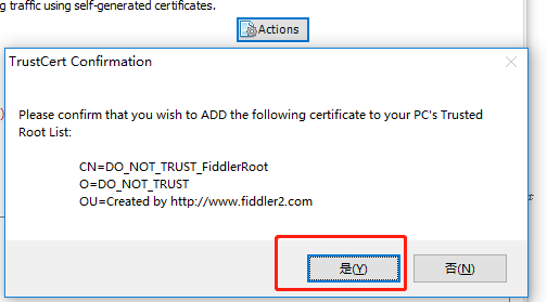 3.下载https证书,点击actions里面的trust root certificate,弹出一个对话框,选择yes,他就会自动下载https证书