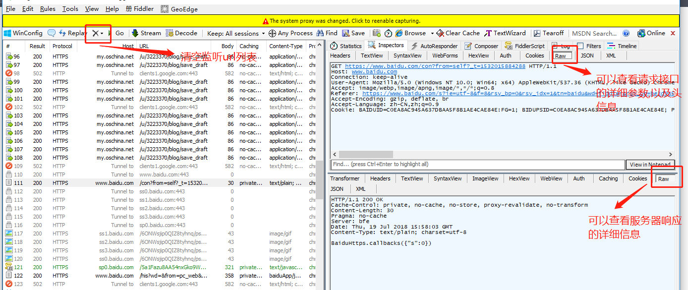 到此,fiddler监听接口塔建完毕,每当客户端发送请求的时候,我们就可以通过查看raw知道传了什么参数给接口,以及接口响应了什么数据给我们客户端.