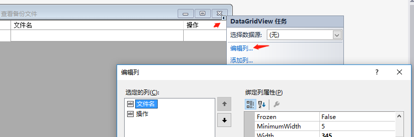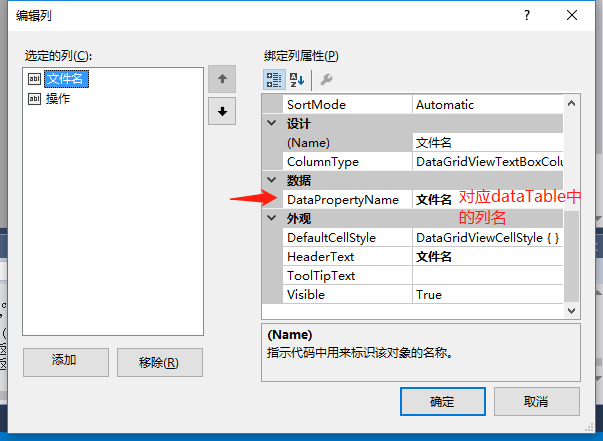 1、datagridview绑定dataTable控件上添加列时需指定列对应的字段名