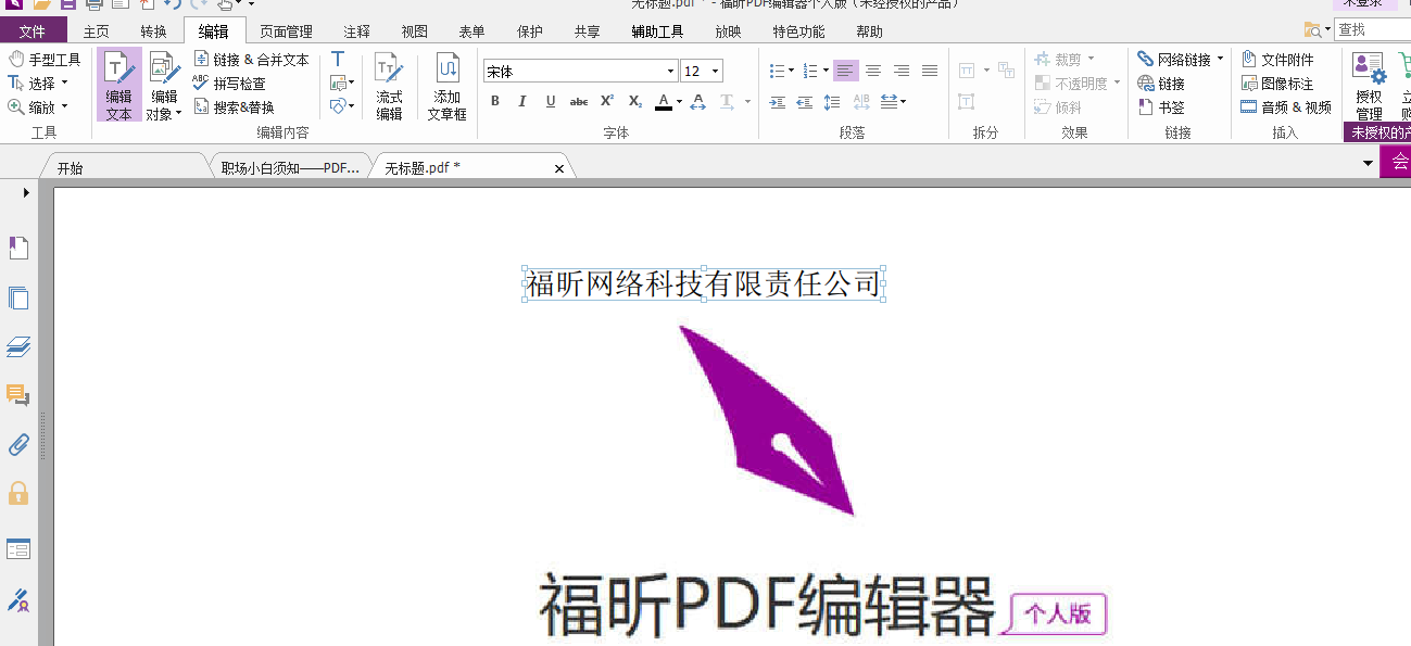 在文本框进行编辑,完成编辑后,点击“手型工具”,退出编辑状态,检查无误即可点击导航栏“文件”->“保存”即可。