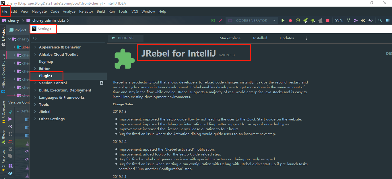 安装JRebel插件