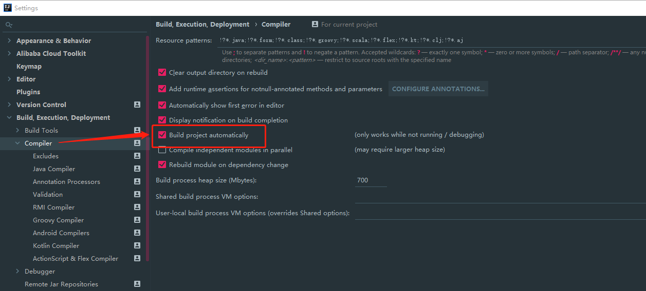 > 2、设置 compiler.automake.allow.when.app.running