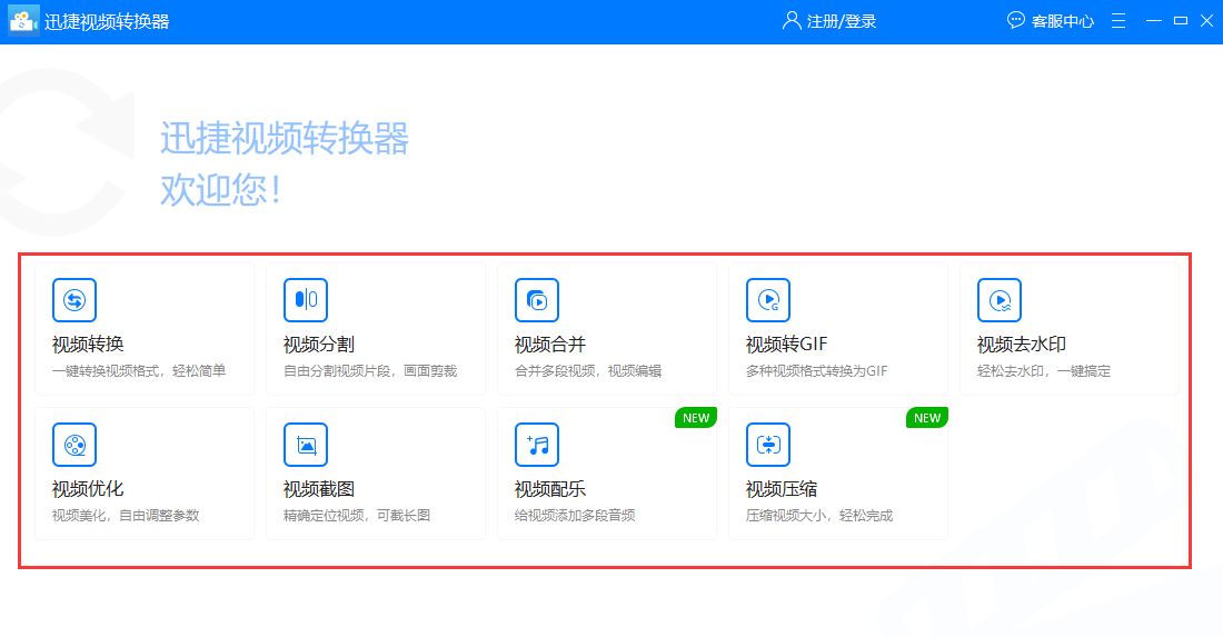 对视频转换器作出相应的了解后选择即将使用的编辑方式,由于到达编辑界面可以再次选择视频编辑方式,因此可以在初始界面中任选一种,而后在编辑界面切换至‘视频转换’功能即可。