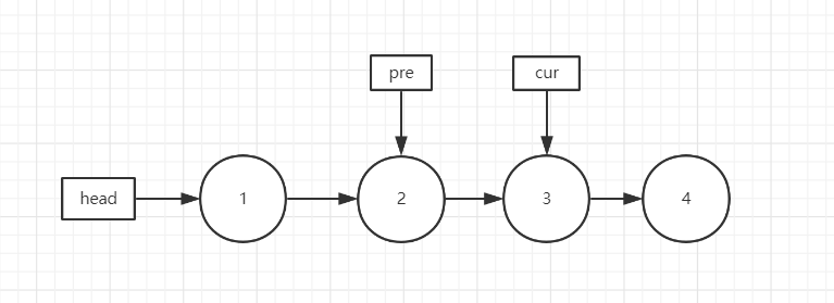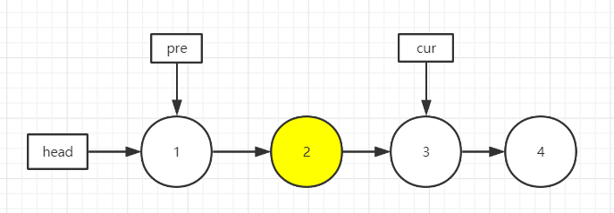 可以看出上述情况下,pre节点不用移动,而cur节点移向next即可 - 如果删除的节点是3,第二步的节点情况应该是