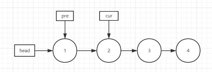 此种情况下,pre节点只想cur,而cur指向本身的next