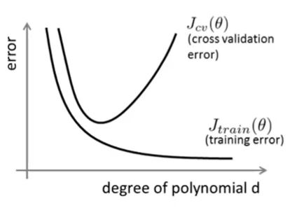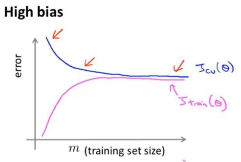 (1)训练集误差大、交叉验证集误差也大:欠拟合、高偏差、多项式次数d太小、λ太大;