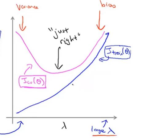 正则化参数选择:0,0.01,0.02,0.08.。。。。10 交叉验证误差评价不同正则化参数的模型,选择使验证误差最小的那个模型的正则化参数