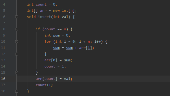 我们试着用最好最坏和平均时间复杂度来分析下这段代码,最好情况,插入数据时数组没满,执行16和17行代码,复杂度O(1),最坏情况,插入数据时正好数组满了,执行8-17行代码,复杂度O(n)。