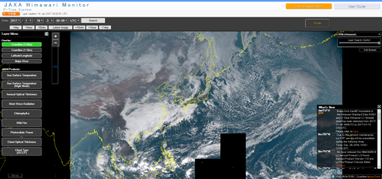 Himawari-8(向日葵8号,以下简称H-8)气象卫星是日本宇宙航空研究开发机构设计制造的向日葵系列卫星之一,是日本于2014年10月7日发射的新一代气象卫星。H-8是世界上第一颗可以拍摄彩色图像的静止气象卫星,以往的卫星每小时只能观测整个地球一次,H-8的观测频率提高到了每10分钟一次,对云层等动向的持续观测性能也得到提升了,从彩色图像上还能掌握黑白图像中无法与云层相区分的沙尘的情况。该卫星设计寿命15年以上,主要用于监测暴雨云团、台风动向以及持续喷发活动的火山等防灾领域。