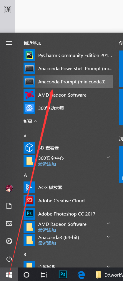 ③这里不建议将环境变量添加到系统中,可以通过Miniconda提供的快捷方式打开命令行界面: