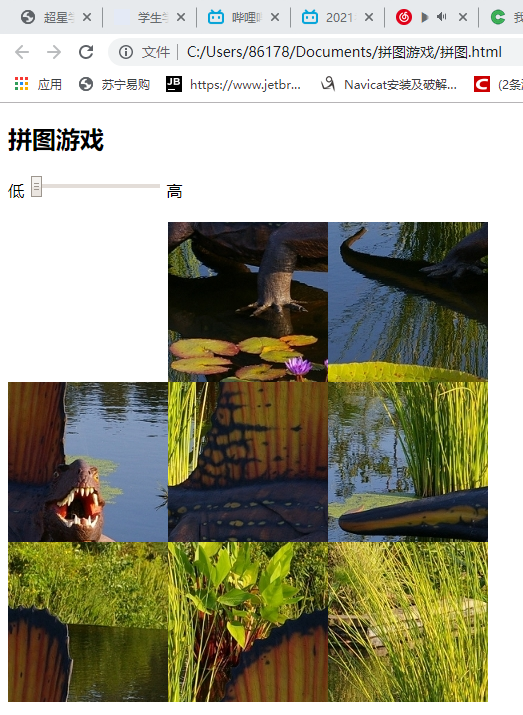 拼图游戏将一幅图片分割成若干拼块并将它们随机打乱顺序。当将所有拼块都放回原位置时,就完成了拼图(游戏结束)。