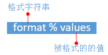 被格式的值:只能是一个对象,可以是元组或是字典。