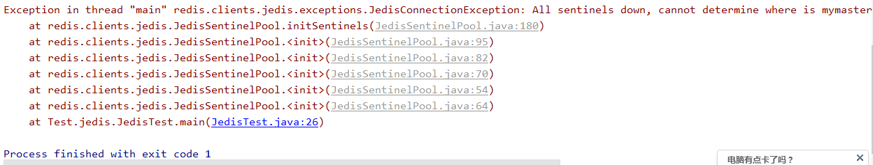 程序如果想要用哨兵模式就必须连接Sentinel,而不能直接连接Redis,下面先放一段测试代码,26379是Sentinel的默认端口