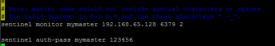 在配置文件加上配置找到sentinel monitor 、sentinel auth-pass 并且配置