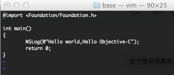 b) 开始Hello World,hello Objective-c!