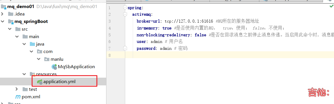 broker-url: tcp://127.0.0.1:61616 #MQ所在的服务器地址