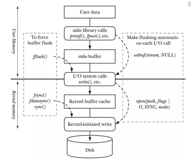 当写操作的可靠性高于写操作效率时,可以通过fsync之类的系统调用实现,或者在open打开文件时,传入O_SYNC这个参数即可。