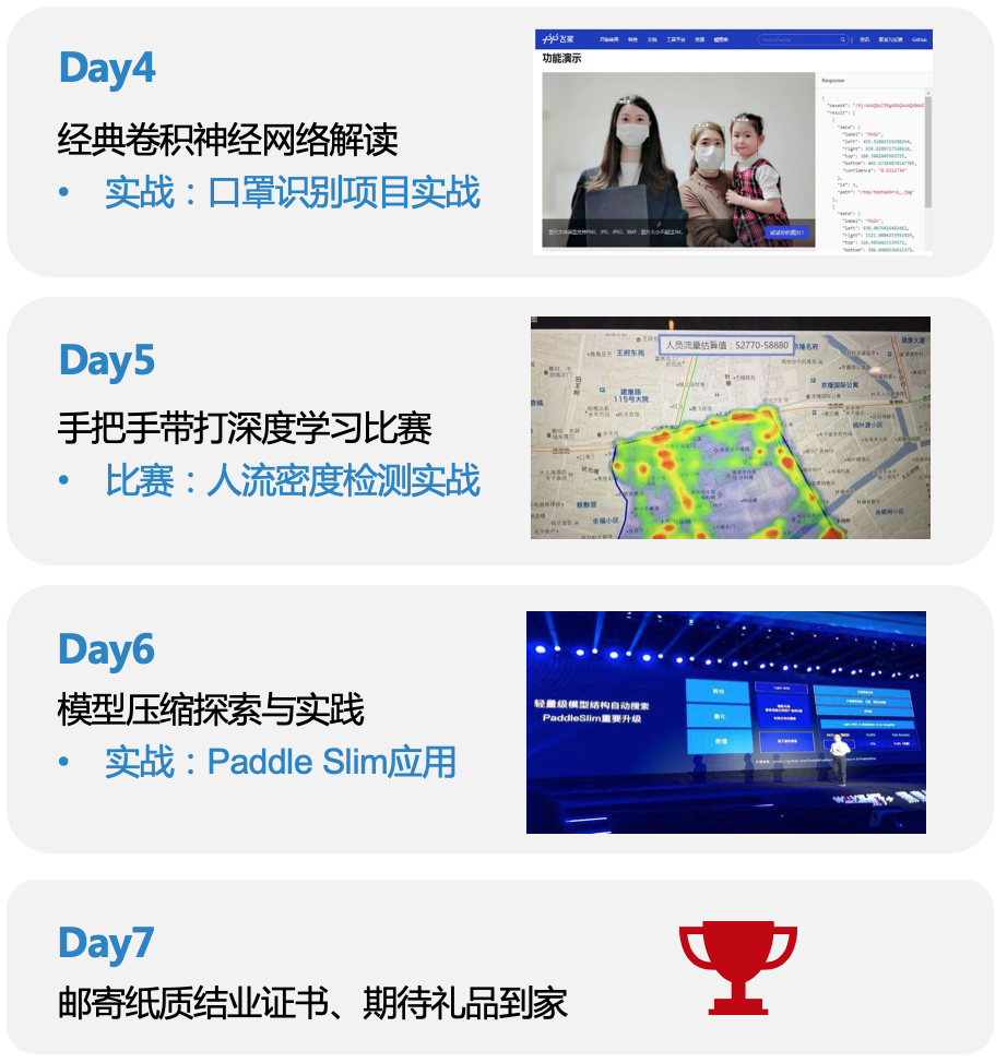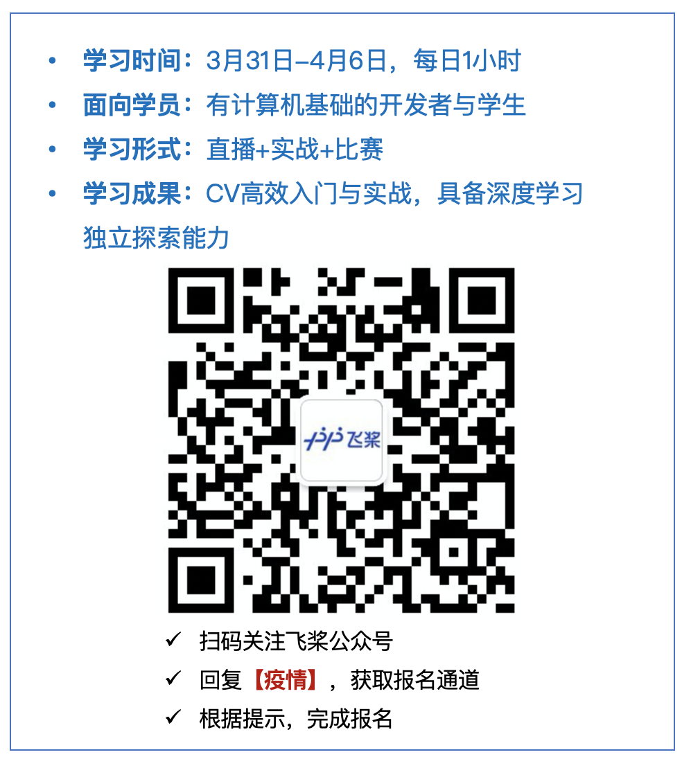会者不难、难者不会,为了降低深度学习技术门槛、培养最优秀的AI人才,百度飞桨资深算法工程师、联合百度认证布道师团队,反复打磨推出了第五期百度深度学习7日打卡营,通过5个新冠疫情最新实战案例、1场人流密度实战比赛,一站式带大家零基础玩转深度学习CV