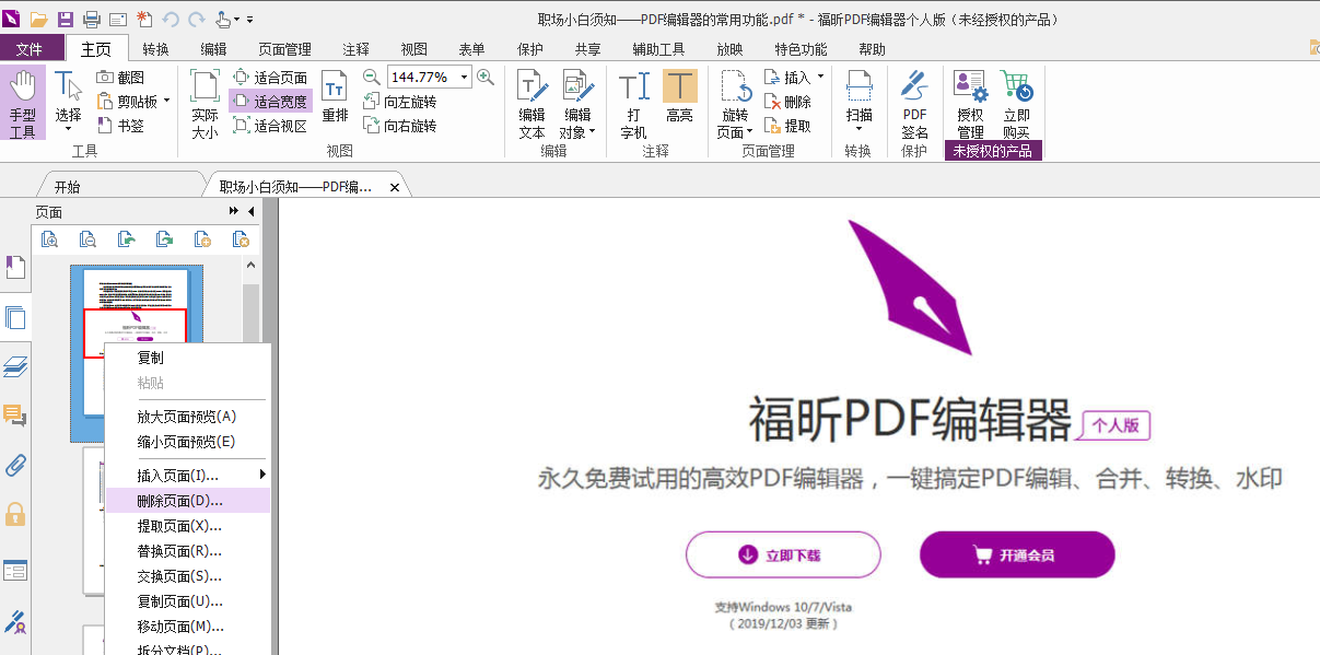 PDF页面删除和合并这提升工作学习效率的技巧您们学会了吗?快去下载福昕PDF编辑试试吧!