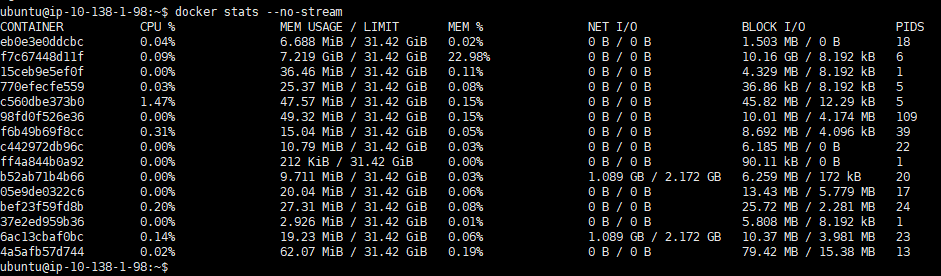 如果不想持续的监控容器使用资源的情况,可以通过 --no-stream 选项只输出当前的状态: