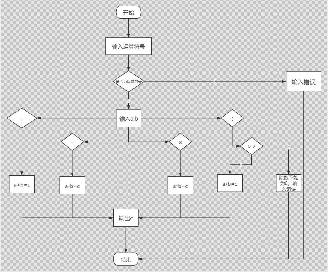 (1)问题简单描述:模拟一个简单的计算器,进行两个数的加、减、乘、除四则运算。