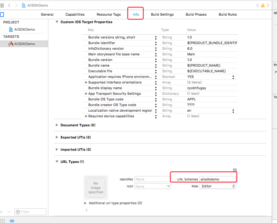 NSString *appScheme = @"alisdkdemo";//url types设置