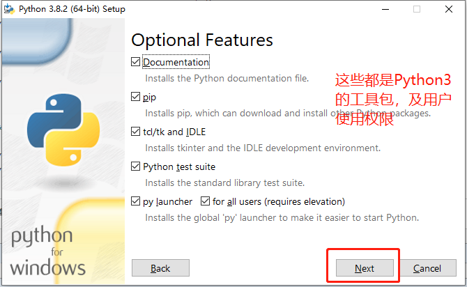 Python3安装方法(这里如果同学你的系统是win7那么先把系统补丁包安装完毕,再点python3的安装包才能执行下面的动作)