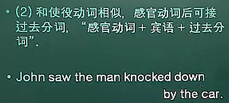 2.和使役动词相似,感官动词后可接过去分词,感官动词+宾语+过去分词