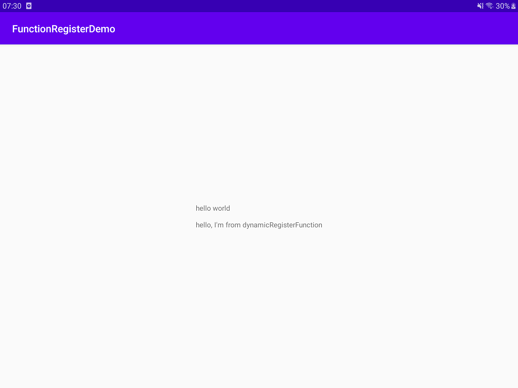 return env->NewStringUTF("hello, I'm from dynamicRegisterFunction");