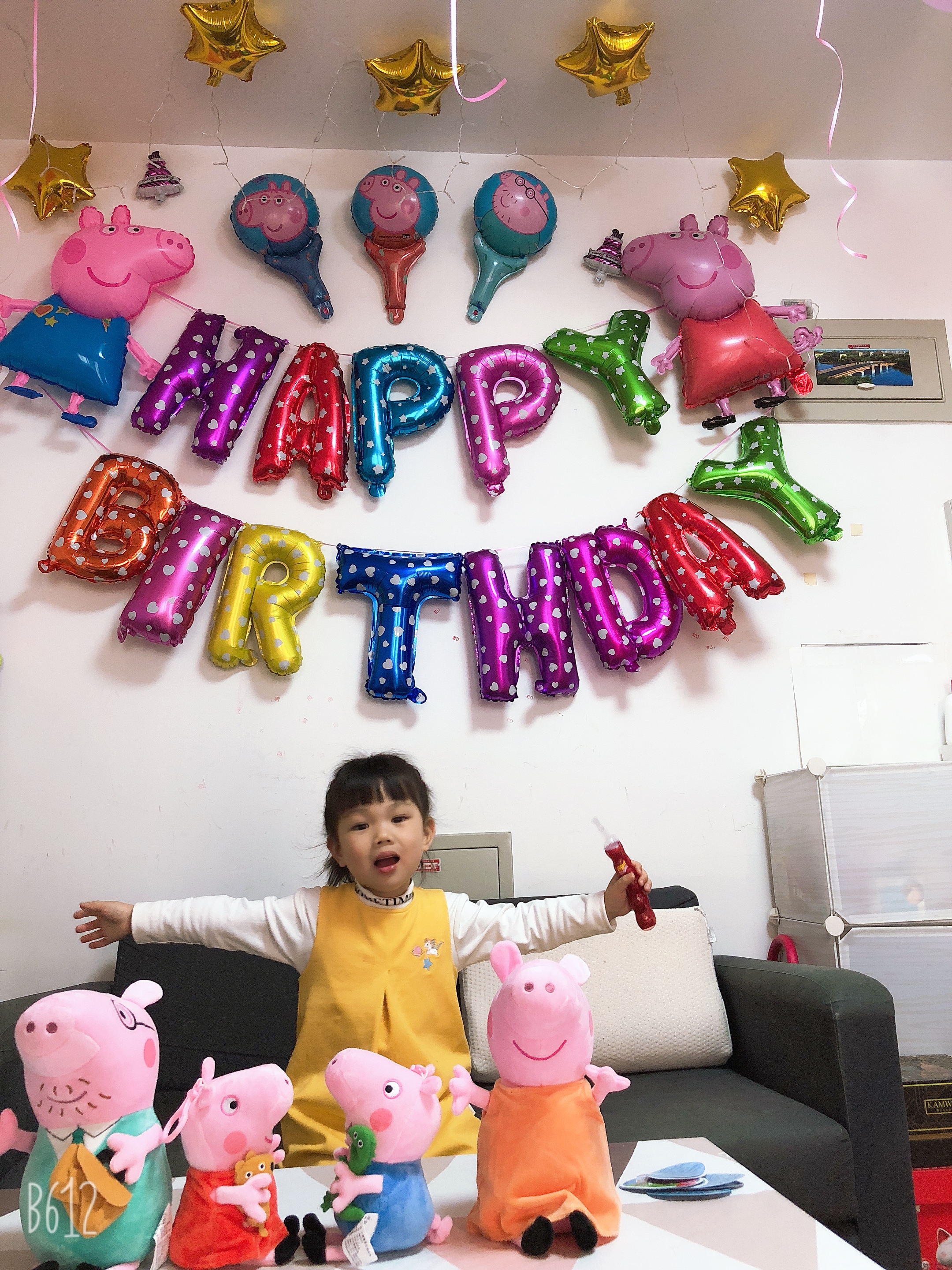 HI,李佑辰小朋友,你已经四岁啦!你曾经说过,下次过生日的时候要像电视里面小朋友过生日一样把家里装饰的特别漂亮,还要小猪佩琦的礼物。生日前一晚你就期待着赶紧天亮,睡前还一直问明天什么时候到?等你睡着了我和妈妈才开始准备小猪佩琦派对背景装饰,彩灯、气球等。当你早上醒来看到成果的时候那得意的小表情,爸、妈觉得这点小辛劳没白费。吃蛋糕中途有点小BUG,当时取蛋糕没注意到没有蛋糕帽,你哭鼻子要生日帽,我用蛋糕盒剪了个帽子凑合戴着,这才满意地开始唱生日歌。虽然只是三个人的派对,我想有段回忆总是美好的。