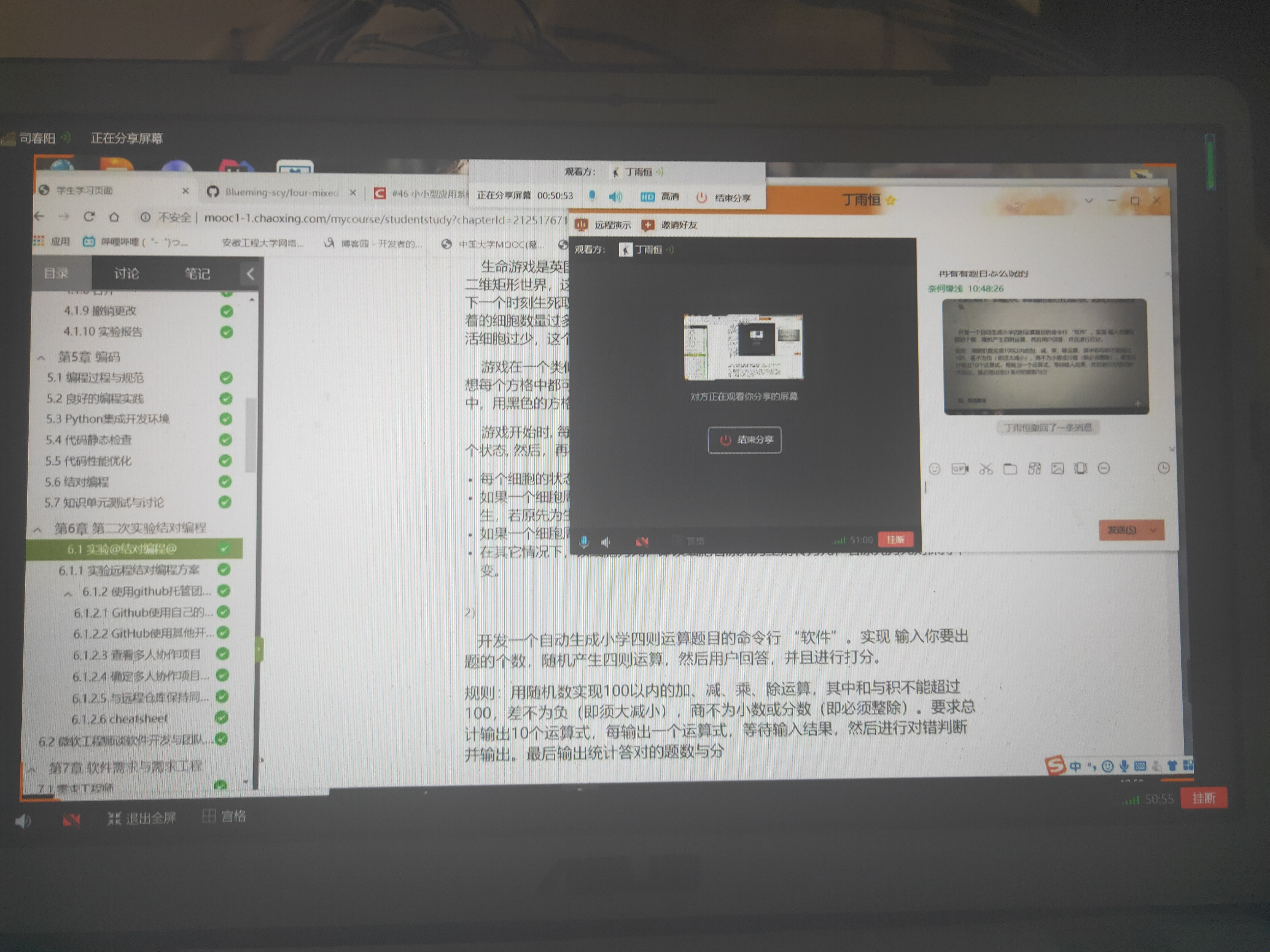 由于本次我们选的四则混合运算代码量较小,程程也较为简单,每次每个人仅写一小部分,但是这样频繁的切换可以使我们更加熟悉git的操作命令