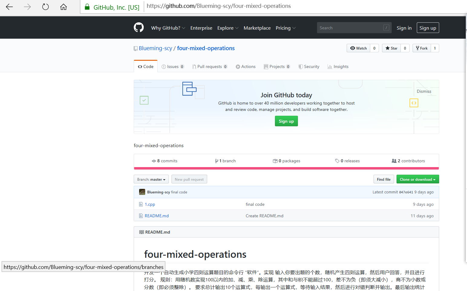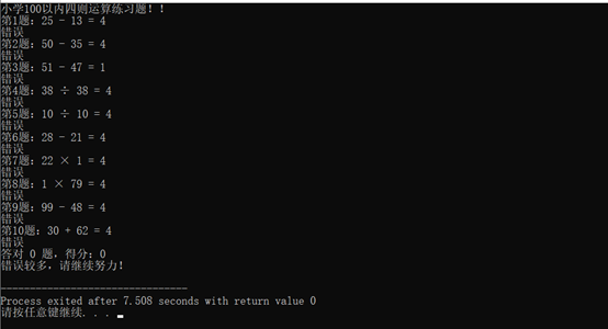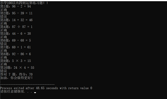代码见上方的各次的合作截图或者访问https://github.com/Blueming-scy/four-mixed-operations/blob/master/1.cpp