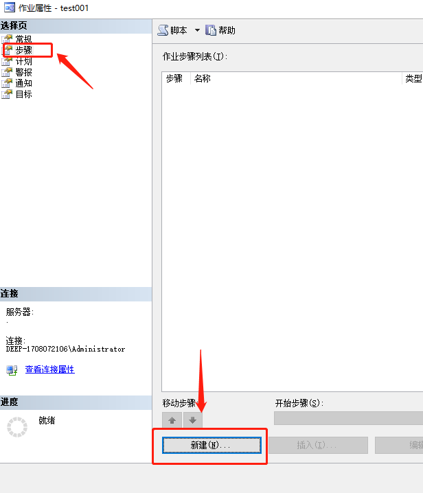 3、 点击常规下面的步骤,按箭头指示,新建步骤.