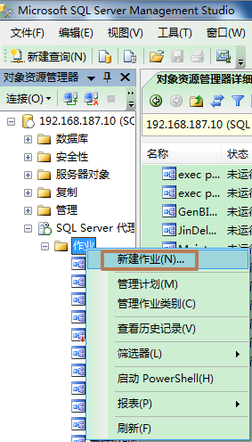 1、打开SQL Server Management Studio,SQL Server代理--作业--点右键--新建作业