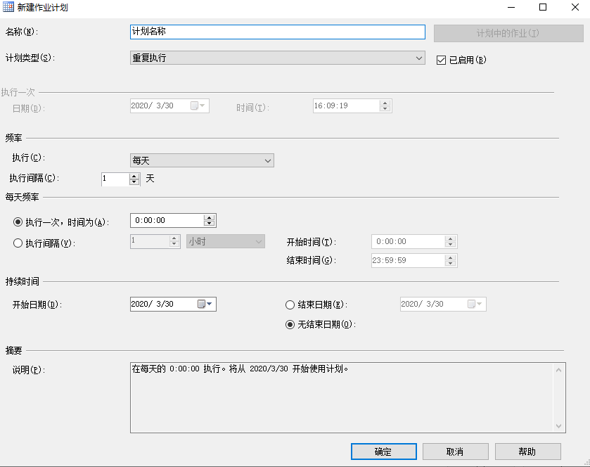 填写需要的计划名称,设置为每天0点执行任务。