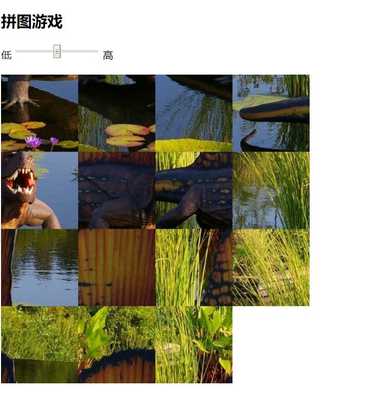 //我们使用一个一维数组存储每个拼块的编号。实现拼块的随机排列。而数组的元素顺序打乱使用带有排序函数的Array.sort()方法来实现。