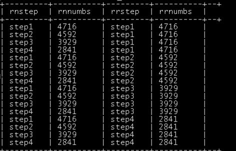select rn.step as rnstep,rn.numbs as rnnumbs,rr.step as rrstep,rr.numbs as rrnumbs from dw_oute_numbs rn