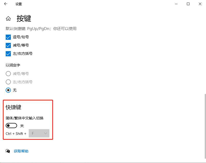 主要的原因是和简体繁体输入法切换的快捷键冲突了,就算是微软自带的输入法也会有这个问题,今天主要是介绍自带的这个输入法如何禁用这个快捷键。在输入法处右键->设置。 1.进入快捷键 2.取消简体繁体快捷键 来源:oschina链接:https://my.oschina.net/hengbao666/blog/3215621 标签 idea全局搜索 idea快捷键 idea 输入法