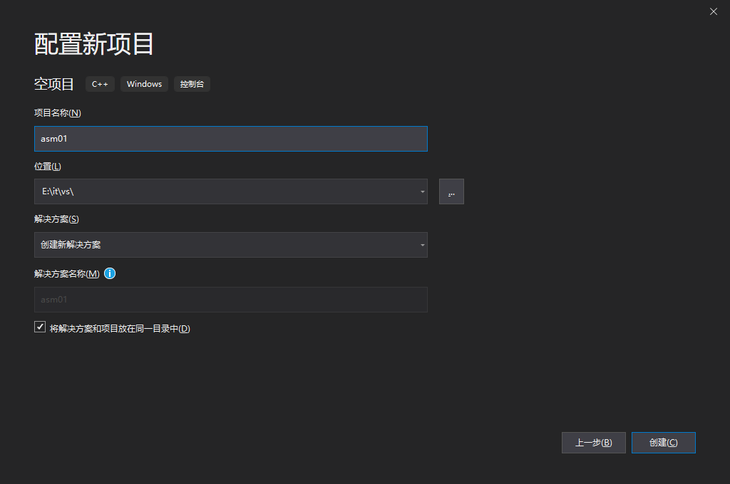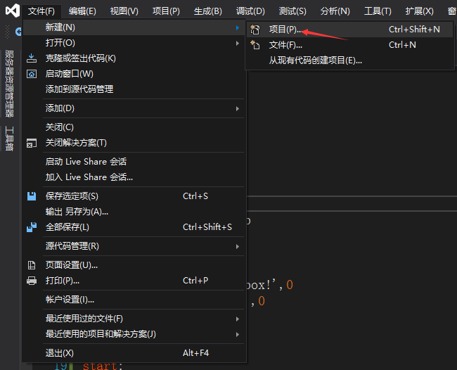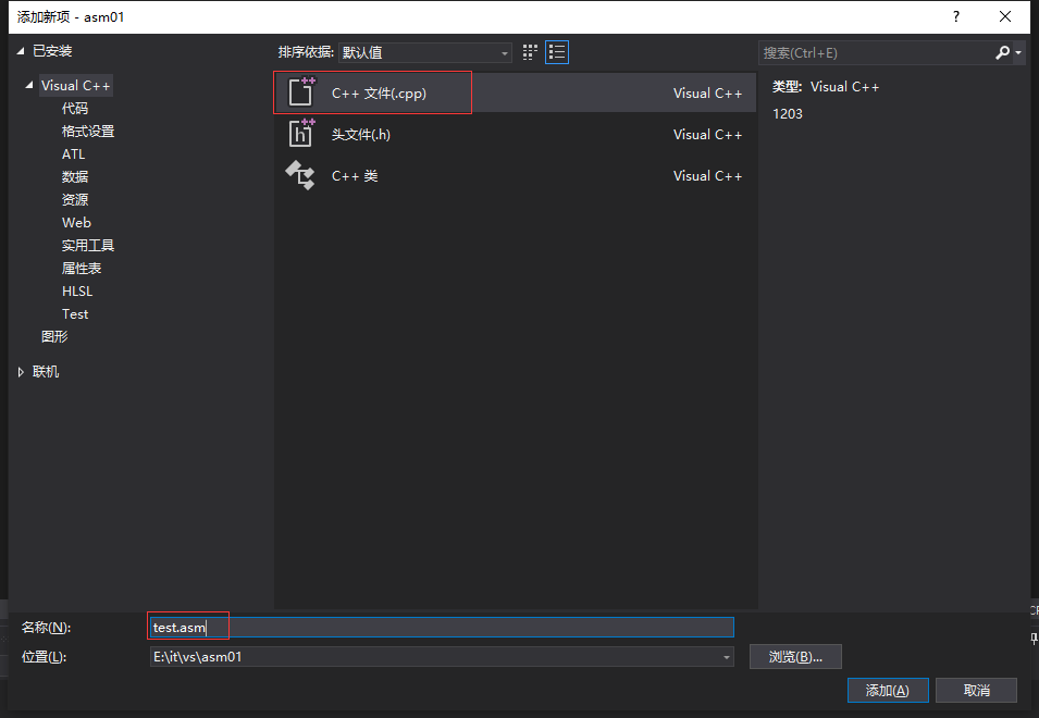 3、选择c++文件,并将文件名称的后缀改成:asm