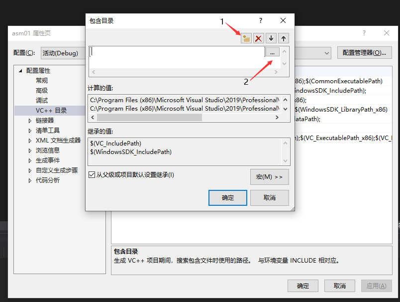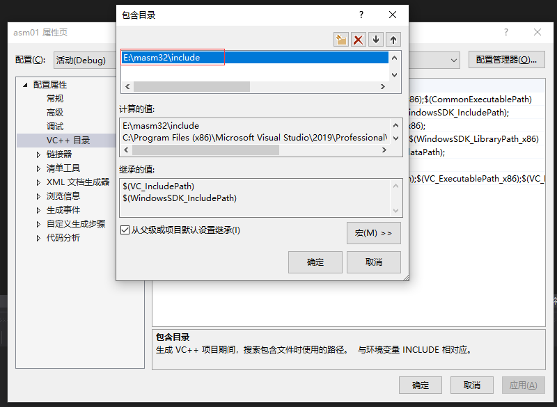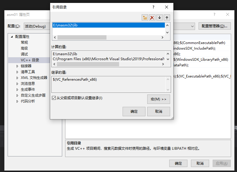 1、可以不添加masm的库文件,因为在VS中已经包含了的库文件;但为了避免在编译中出现未知错误,建议添加库文件