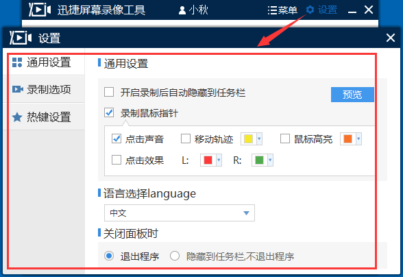 要解决视频录制出现卡顿或没声音等情况时可以利用迅捷屏幕录像工具等能够解决这些问题的录屏软件进行录制。首先可以在伴随‘设置’按钮出现的调整框中定义屏幕录制时面板和鼠标的显示状态等参数。