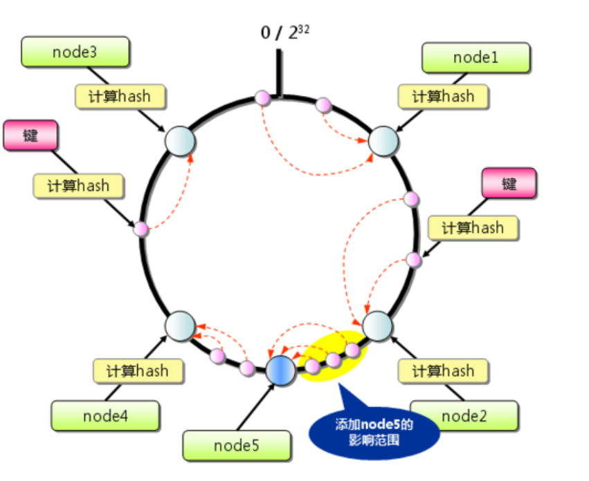 根据hash一致算法的映射查找规则,受影响的缓存只有新服务器的hash值----新服务器逆时针的第一个服务器hash值得范围,也就这块区域的缓存失效,大大降低了失效范围。