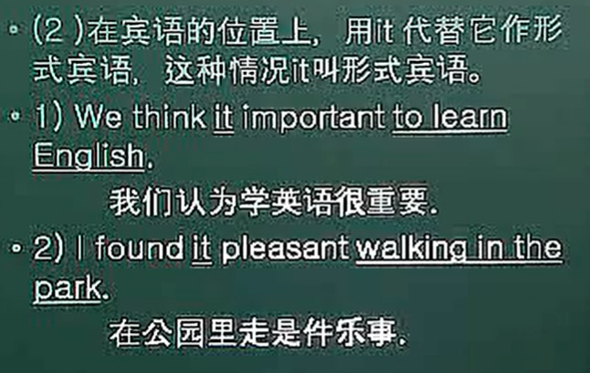 2.在宾语的位置上,用it代替它做形式宾语,这种情况叫形式宾语