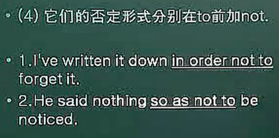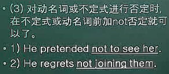 3.对动名词或不定时进行否定时,在不定式或动名词前加not否定就可以了