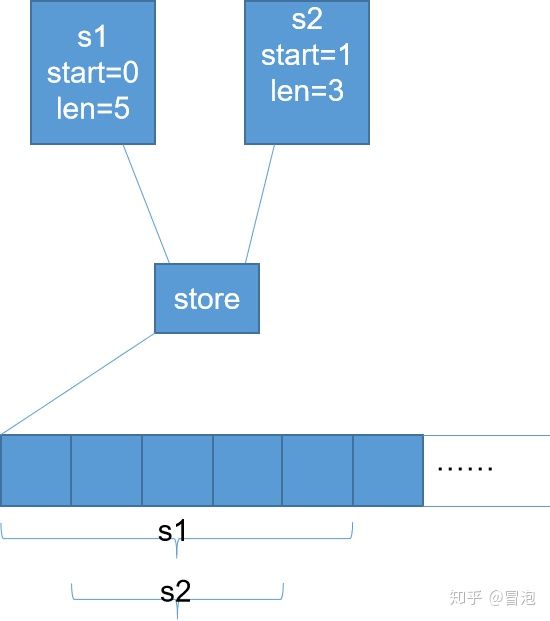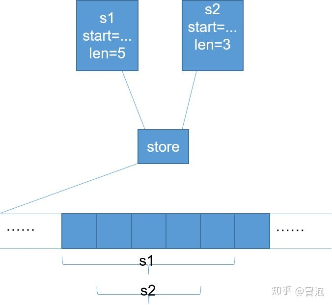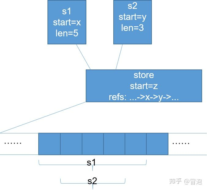 话说这种结构并不难想:如果s1和s2要引用同一块存储空间,意味着其中一个通过append新申请了空间,需要将信息同步给另一个,可以有两种思路: