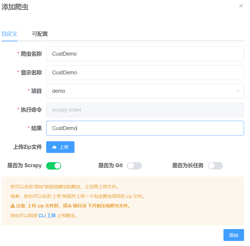 Crawlab上CLI部署自定Spider