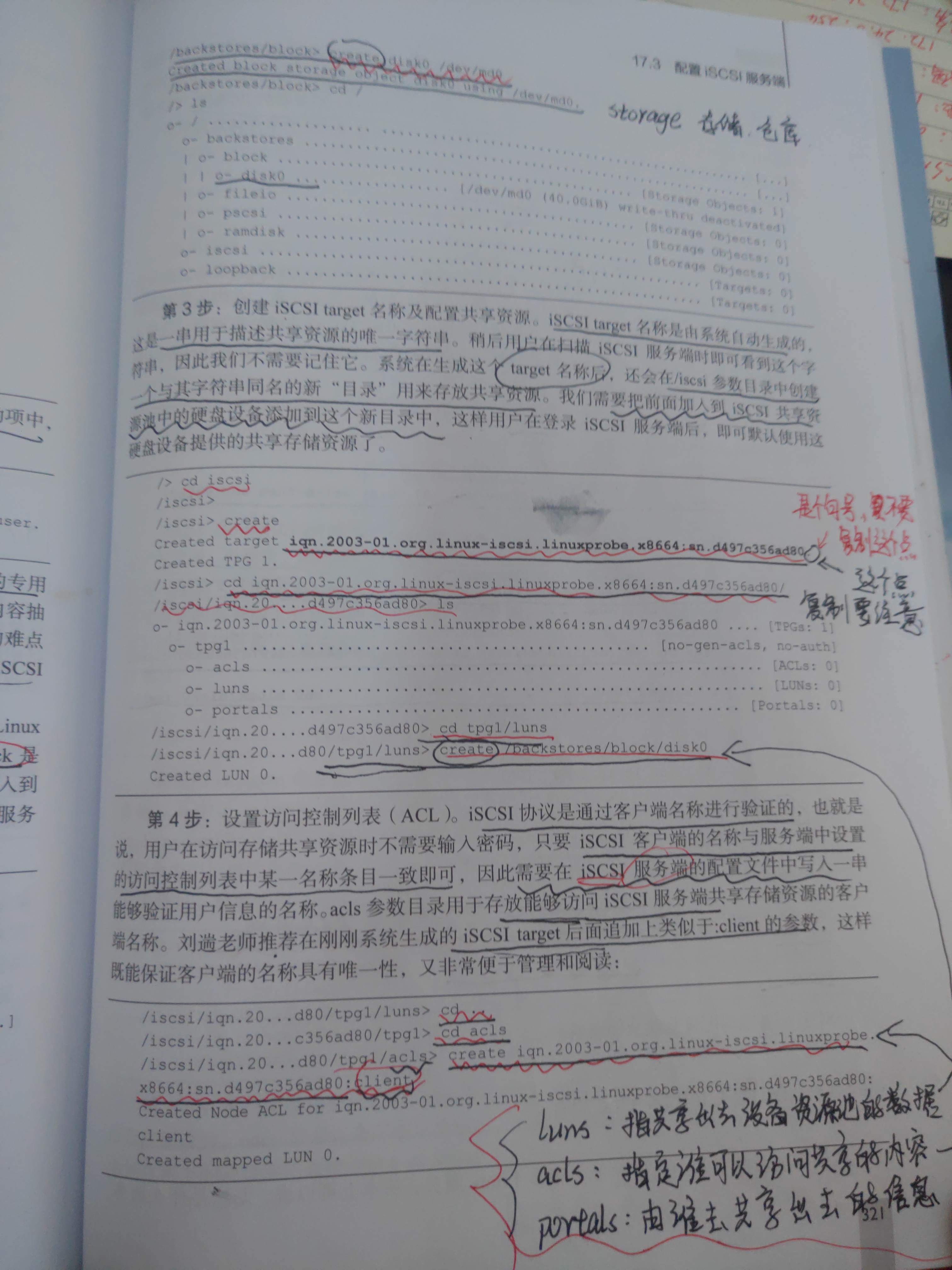 /iscsi/iqn.20...d80/tpg1/acls> iqn.2003-01.org.linux-iscsi.linuxprobe.x8664:sn.d497c356ad80:client #指定谁可以访问共享的内容