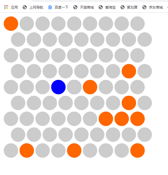 游戏介绍: 蓝色圆圈表示神经猫,点击灰色圆圈围捕神经猫,不让神经猫逃走即可获胜。