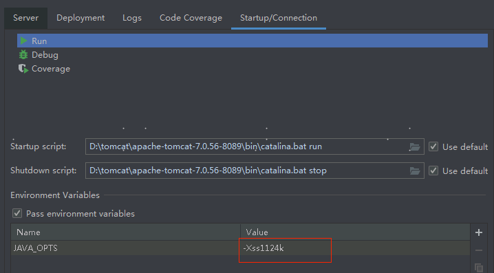 - 另外一点,配置成-Xss1024k,使用run模式,也能正常,但debug就是起不来,查看对比一下run与debug的区别