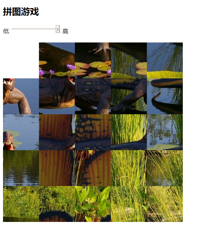 //我们使用一个一维数组存储每个拼块的编号。实现拼块的随机排列。而数组的元素顺序打乱使用带有排序函数的Array.sort()方法来实现。